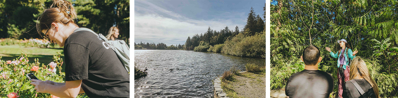 We split into two groups after a quick tutorial on the app. Natasha took the first group to the Stanley Park Lagoon to look for birds and specific species. The second group headed to the rose garden at Stanley Park to practice using the app and identifying insects.