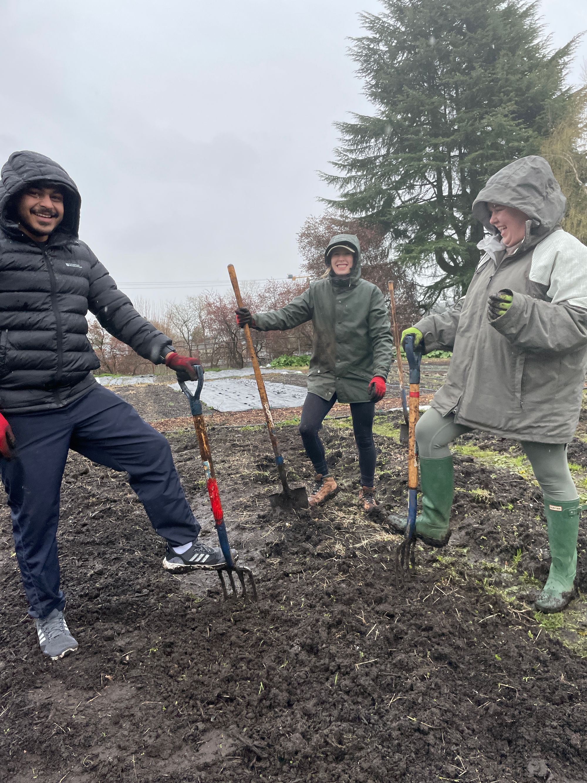 The teams trudged out in the cold, windy, and rainy weather to pull weeds, pick kale, rake out beds, and more. Suffice it to say, it wasn’t exactly a “pleasant” day out on the farm. They were cold and wet, but despite all of that, there we smiles, laughter, and genuine team connection as everyone gave their time together.