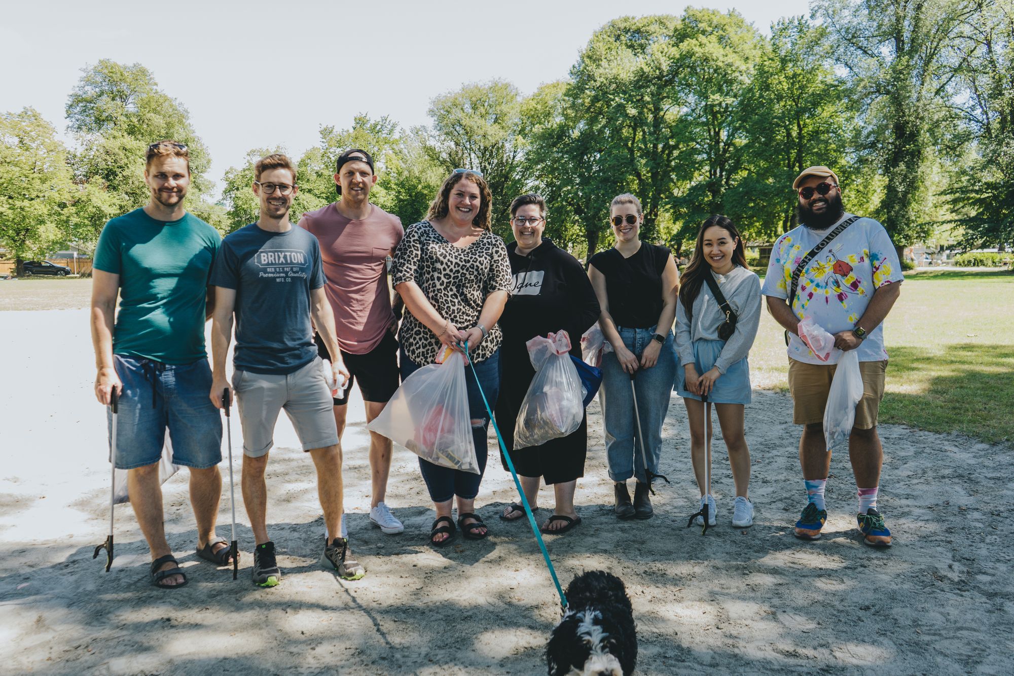 Jane.app is an online platform for health and wellness practitioners that makes it simple to book, chart, schedule, bill and get paid. They created a team using the new Teams feature and brought a group of eight staff out to Woodland Park in East Vancouver for a neighbourhood cleanup. They brought their own trash pickers and garbage bags and split into groups of two. In their groups, they scoured the park for garbage and trash, picking up everything they could find. One attendee even brought their four-month-old bernedoodle puppy which was a highlight for sure! The team finished cleaning the park and headed to Earnest Ice Cream for a well deserved treat.
